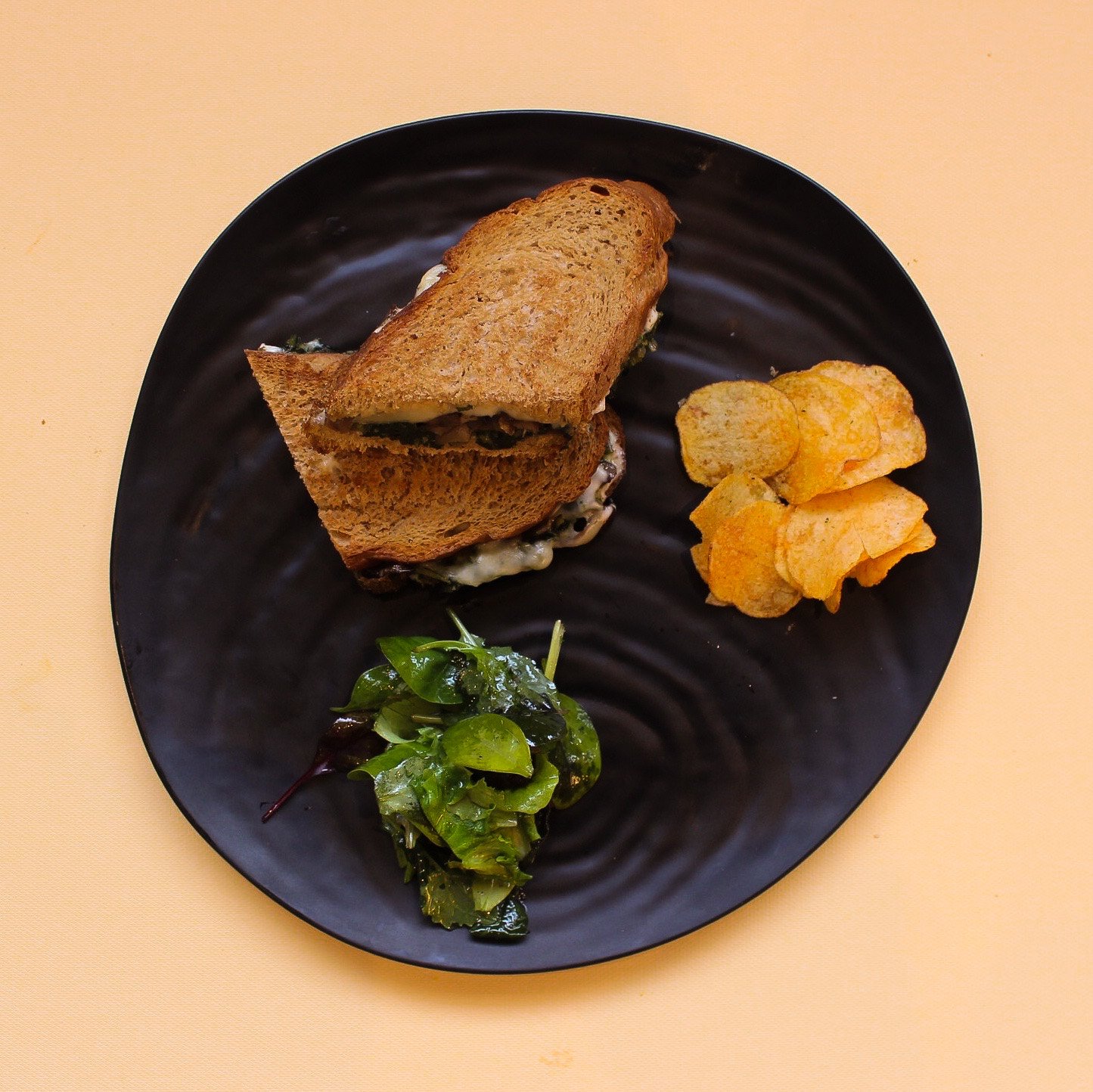 Sautéed mushrooms, spinach, Swiss cheese, and aioli on our freshly baked whole-wheat bread