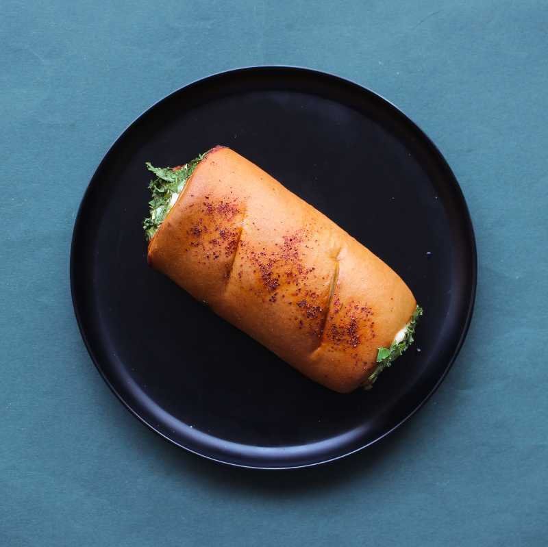 Tandoor roasted cottage cheese with Indian spices in bread roll
